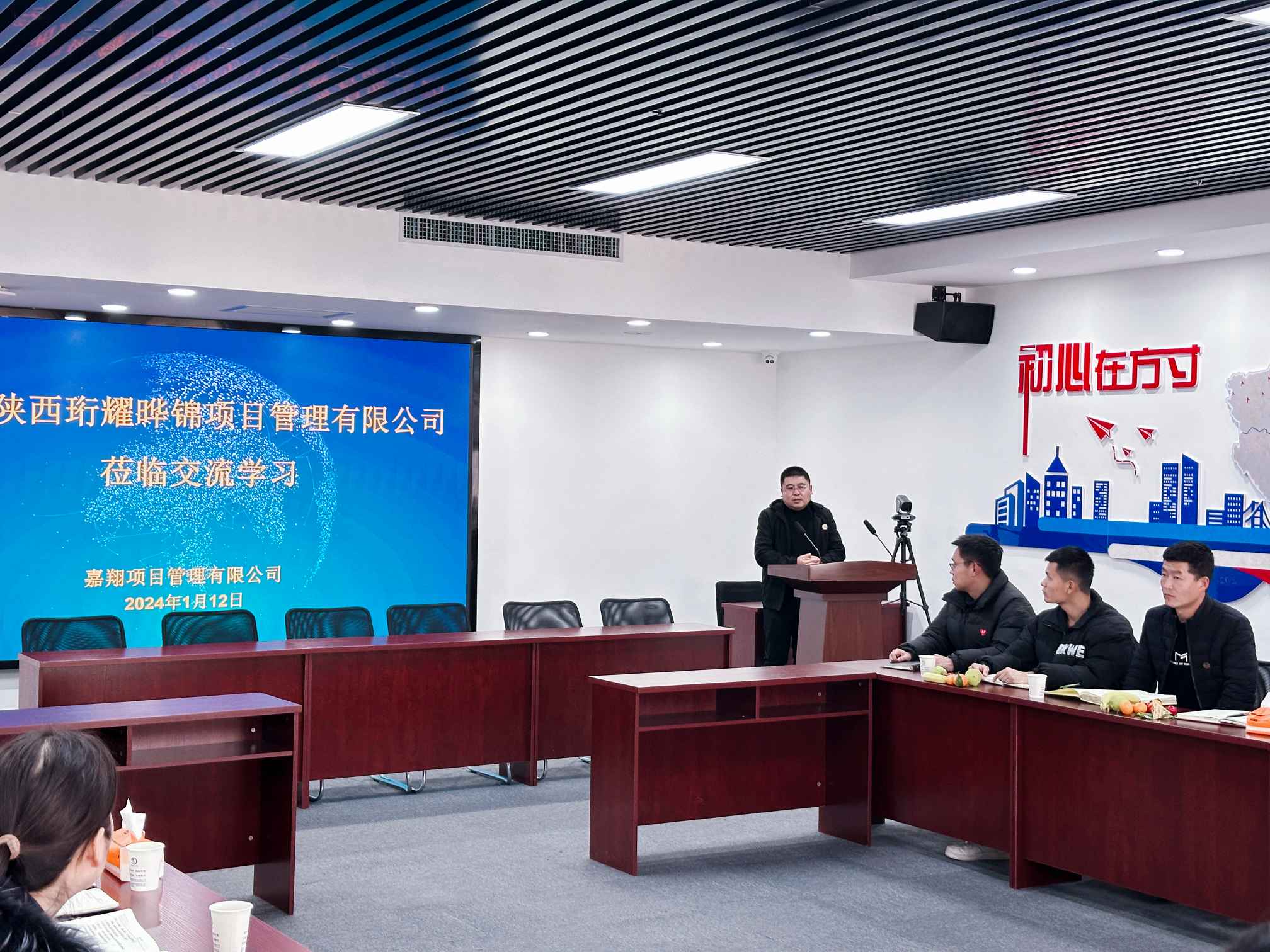 2024年1月12日,嘉翔項目管理有限公司與陜西珩耀曄錦項目管理有限公司以“心連心、手拉手、結對子,促發展”為主題,組織召開了一場充滿意義的交流學習活動。