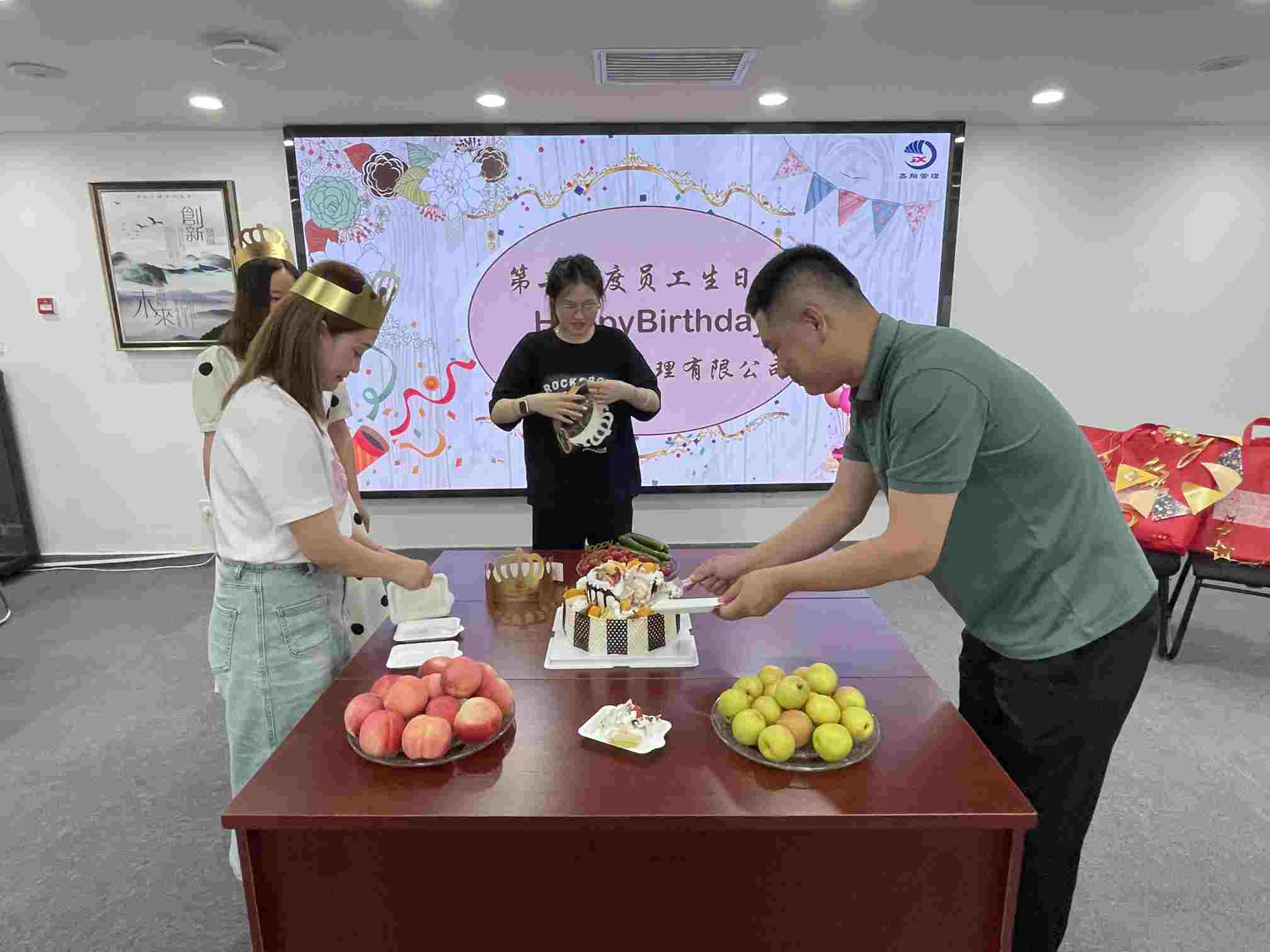 嘉翔一直為員工營造和諧、真誠、積極向上的工作氛圍,讓每一個人在工作之余感受到在公司滿滿的幸福感和濃濃的歸屬感。每一次精心準備的活動,都融入了公司對員工的關愛,并合影留念,將這個難忘的生日會定格!為每一位壽星們分發香甜可口蛋糕,共同分享著生日的喜悅。以及對長久以來員工付出的努力的感謝和肯定,愿與大家一起攜手,共創未來!我們一直都在,我們始終一路同行。
