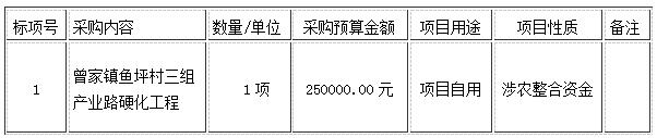 一、采購項目名稱:曾家鎮魚坪村三組產業路硬化工程