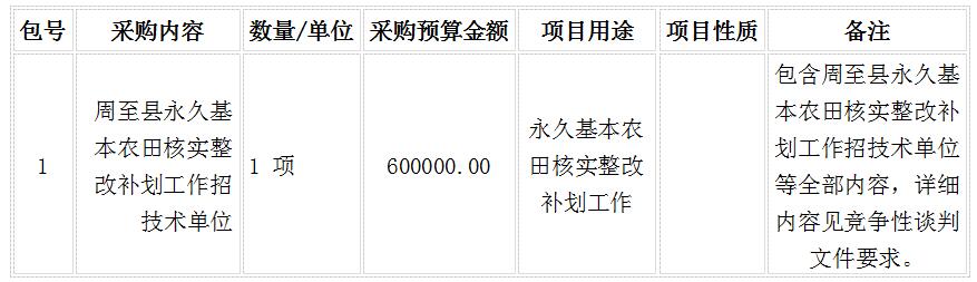 一、采購項目名稱:周至縣永久基本農田核實整改補劃工作招技術單位