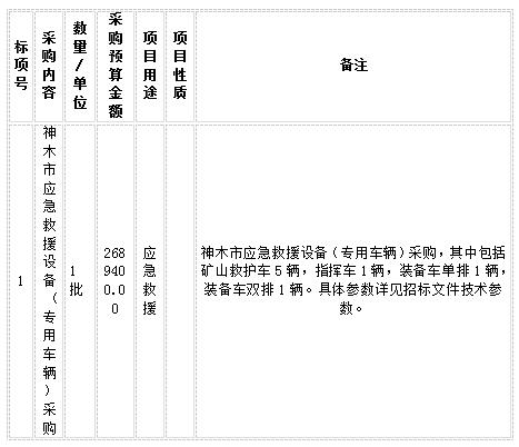 一、采購項目名稱:神木市應急救援設備(專用車輛)采購