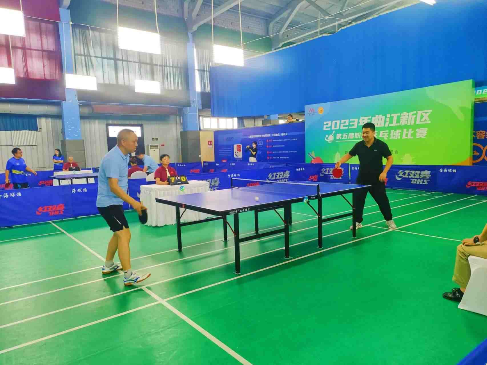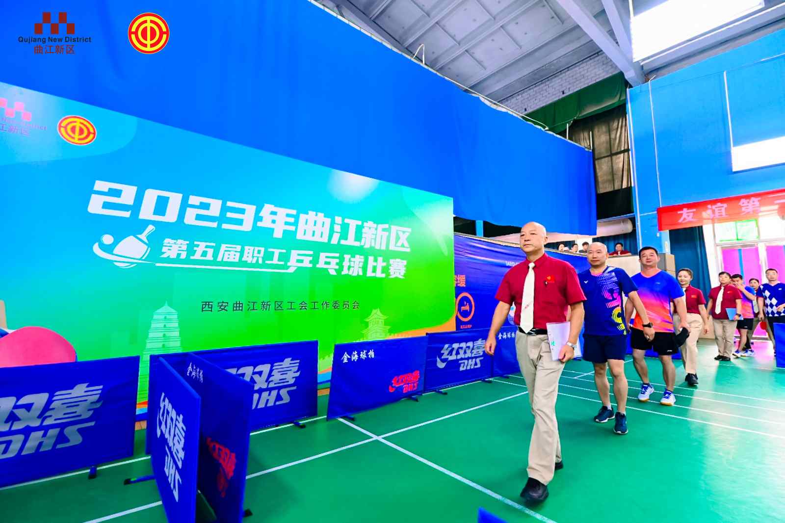 2023年8月9日上午, 由西安曲江新區工會工作委員會組織的2023年曲江新區第五屆職工乒乓球比賽在愛康羽毛球館舉行,來自曲江新區各個機關、企事業單位14家單位代表隊伍,共計150名運動員報名參賽,我公司田凱同志作為嘉翔項目管理有限公司員工代表參加本次比賽。
