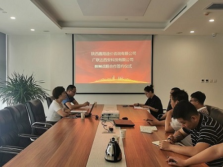 2019年7月24日,陜西嘉翔造價咨詢有限公司與廣聯達西安科技有限公司主要管理團隊匯聚一堂,會議圍繞“合作、交流”為主題,就中介咨詢企業BIM新業務開發、BIM技術服務咨詢團隊組建、廣聯達BIM產品支持等內容友好磋商與交流,進一步達成一致意見,共同推進BIM技術在中介咨詢企業發展和全過程咨詢服務中的應用,并簽署了《BIM業務發展戰略合作協議》。