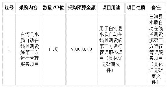 一、采購項目名稱:白河縣水質自動在線監測設施第三方運行管理服務項目
