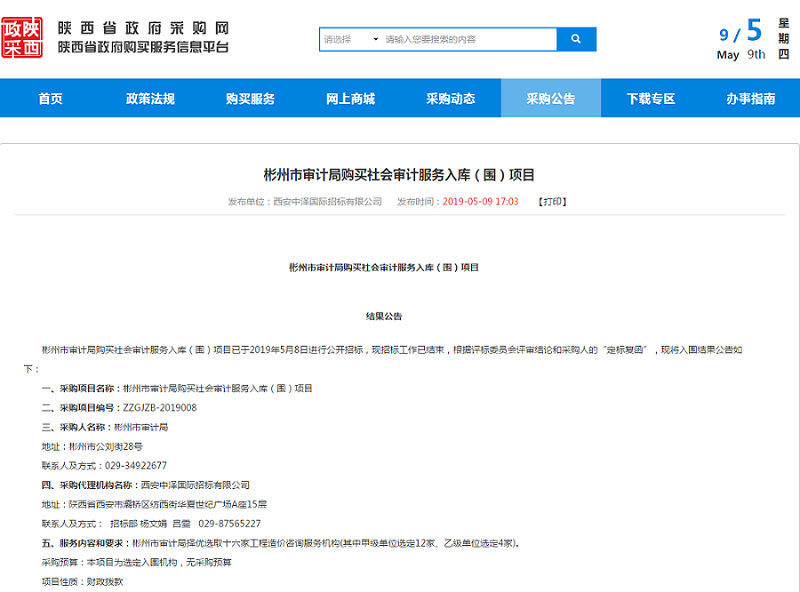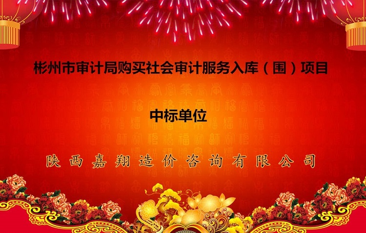 恭喜陜西嘉翔造價(jià)咨詢(xún)有限公司成功中標(biāo)彬州市審計(jì)局購(gòu)買(mǎi)社會(huì)審計(jì)服務(wù)入庫(kù)(圍)項(xiàng)目